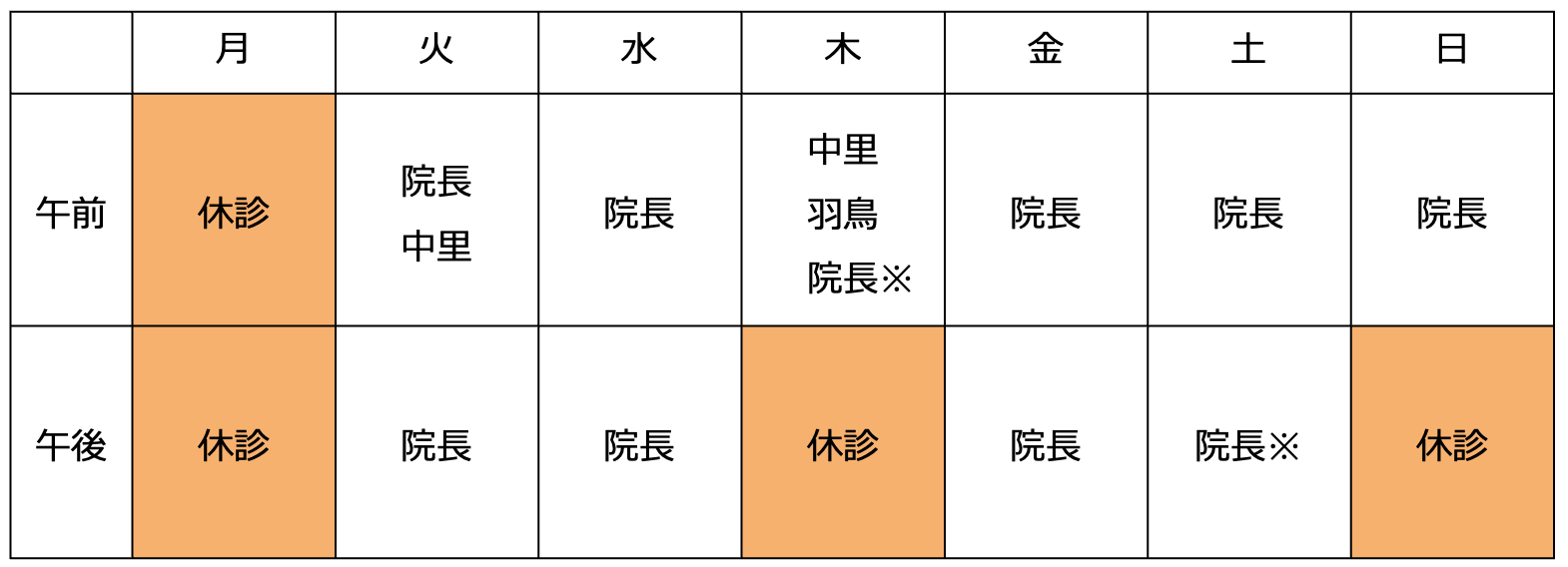 | 休診日 | 月曜・木曜午後・日曜午後・祝日 |